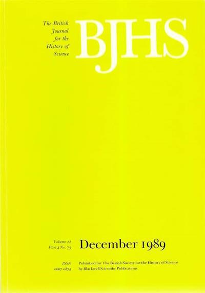 British Journal for the History of Science Vol. 22(4), No. 75: 401-418 (complete issue - includes other papers).