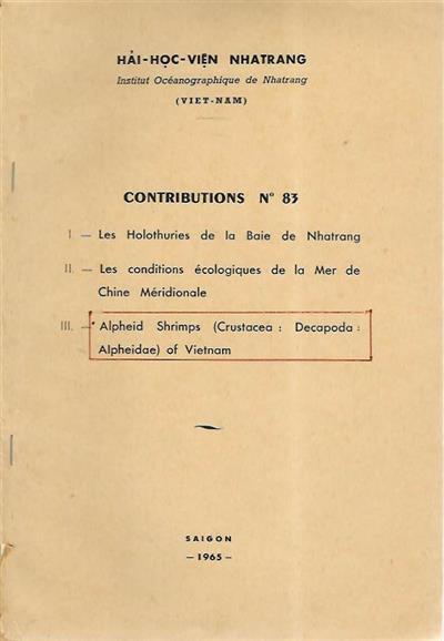 Text English. Ann. Fac. Sci. Saigon, 1963: 269-362. Institut Océanographique de Nhatrang, Contributions No. 83, III.