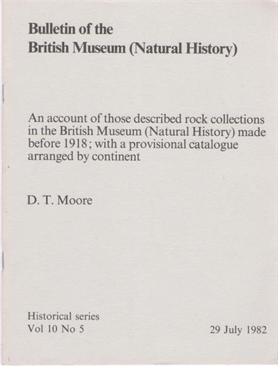 An Account of those described Rock Collections in the British Museum (Natural History) made before 1918 with a provisional Catalogue arranged by Continent