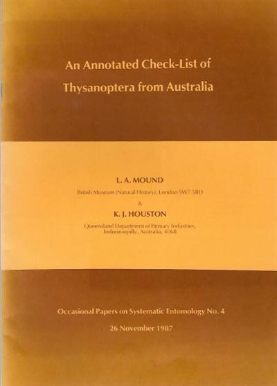 An Annotated Check-List of Thysanoptera from Australia Occasional Papers on Systematic Entomology Number 4