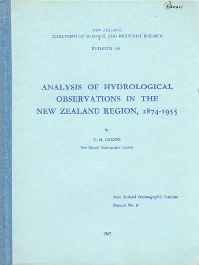 Analysis of Hydrological Observations in the New Zealand Region, 1874-1955
