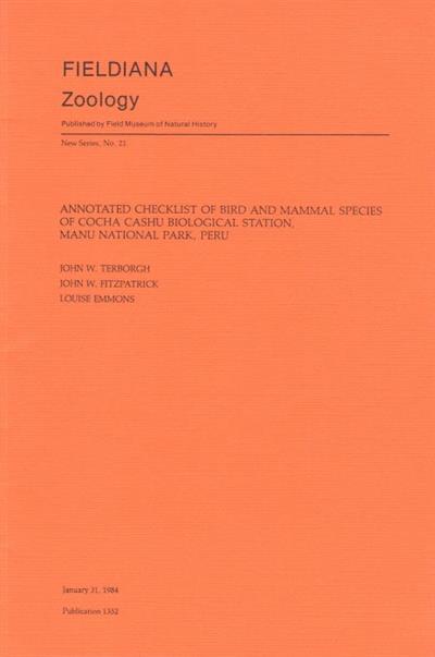 Annotated Checklist of Birds and Mammals Species of Cocha Cashu Biological Station, Manu National Park, Peru
