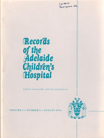 Records of the Adelaide Children's Hospital Vol 1. (1). Bound with other papers.