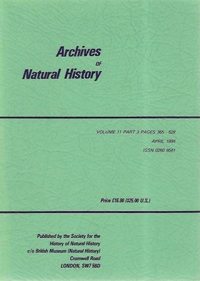 - Publisher : Society for the History of Natural History