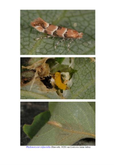 Text French. Illustrations of the male and female genitalia of the Lithocolletinae (Gracillariidae) known from France, of which the genus Phyllonorycter comprises over 100 species. Species are grouped according to the larval hostplants. The plates illustrate male and female genitalia together with figures showing the forewing and/or photos of living specimens. Supplementary plates illustrate larvale stages and leaf mines of 13 typical species.