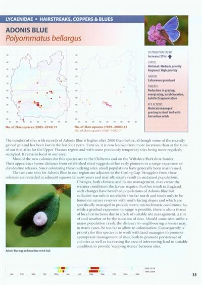 This book presents a further advance on knowledge of the butterflies of Berkshire, Buckinghamshire and Oxfordshire. Detailed analysis of over 700,000 records, comparing the ten-year period 2005–2014 with 1995–2004, highlights recent changes in distribution and abundance. Changes noted in previous atlases continue, with several species declining further in both distribution and population. There are some major changes – ranging from the dramatic loss of local populations of Wall to welcome increases in distribution and population of Silver-washed Fritillary.