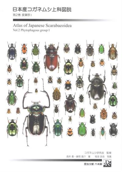 Text Japanese. Comprehensive photographic catalogue of Japanese Scarabaeoidea to be completed in 3 volumes. Vol. 2 covers all 105 species + 43 subspecies of 7 subfamilies of Scarabaeidae - Glaphyrinae, Rutelinae, Dynastinae, Euchirinae, Cetoniinae, Trichiinae and Valginae. Each species is shown on one full page with scientific name and at least 10 detailed photos: dorsal, oblique, lateral and ventral, top of head, close-up of pronotal and elytral sculpturing, fore tibia, aedeagus, etc. Information such as distribution, temporal occurrence, habitat type, altitude and relative abundance are shown in the form of bar charts and are easily understood. Photos are of exceptional quality