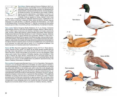 Text Spanish. Third edition, revised and updated, of the most popular Field Guide to the identification of the birds of Spain, with more than 40,000 copies of previous editions sold. Recommended by SEO/Birdlife. Contains updated information on all bird species present in Spanish territories. Includes Peninsular Spain, Ceuta, Melilla and the Balearic and Canary Islands. Describes field identification characteristics, habitat, migratory status, distribution and conservation status of all regularly present species and common vagrants, and also contains an appendix with a summary of other occasional species. Completely revised texts and many new drawings. Updated taxonomy following the HBW and Birdlife International Illustrated Checklist of the Birds of the World. More than 300 maps detailing the areas of presence throughout the year. Around 1,000 colour illustrations showing the main details for the identification of the species in the field. 567 species, including 173 vagrants. Index with names in the Spanish, Catalan, Basque and Galician languages.
