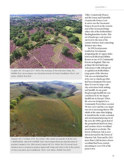 a rich selection feature in this book. John Comont has contributed an introductory chapter on change in Bedfordshire in the last 20 years.The habitat chapter is divided into five sections: Woodland, Mire and Heath, Grassland, Freshwater and Other Habitats. Each section has an introduction discussing the habitats and highlighting some changes over the last two decades. The sites featured in each section are from across the county, generally have public access and many are nature reserves. The site photographs are often accompanied by images of some of the wildlife that may be seen in those habitats. An important chapter on 20 years of change in Bedfordshire’s countryside has been contributed by John Comont, Conservation Director of The Wildlife Trust for Bedfordshire, Cambridgeshire and Northamptonshire. Previously County Ecologist for Bedfordshire, John has an extensive knowledge of the wildlife habitats of the county. A third chapter of photographs highlights a selection of species whose distributions appear to have changed in recent years, including species new to the county.