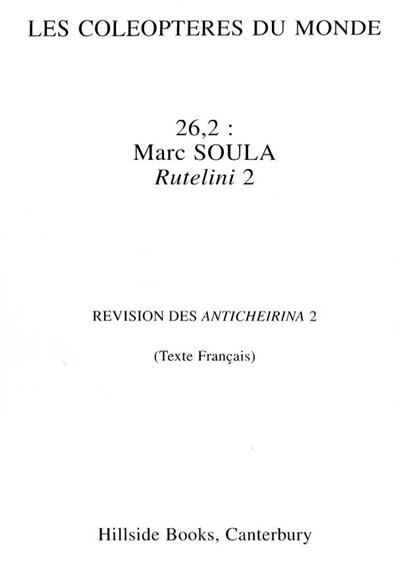 Beetles of the World. Supplement 26.2: Revision des Anthicheirina (Rutelini) 2