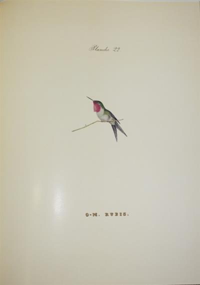 Limited facsimile edition of 'Oiseaux-mouches Orthorynques du Brésil, peints et décrits par le Dr. Th. Descourtilz' (published 1831). Original French text, together with Portuguese translation. Critical systematic commentary of Humming birds by O.M. de O. Pinto. Limited to 1,000 copies (this copy, No. 710).