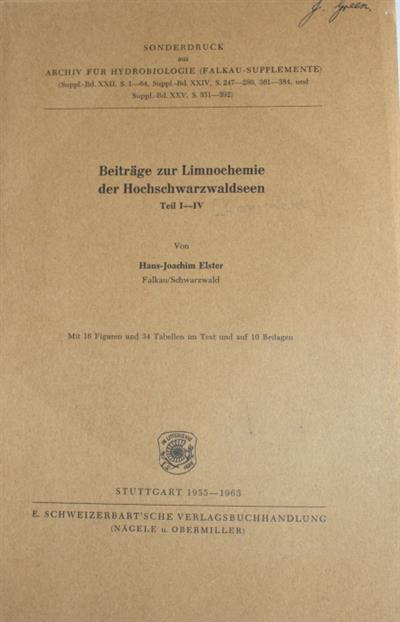 Text German. Archiv für Hydrobiologie (Fallkau-Supplemente): Suppl.-Bd. XXII, S. 1-64; Suppl.-Bd. XXIV, S. 247-280, 361-384 and Suppl.-Bd. XXV, S. 351-392. Complete.