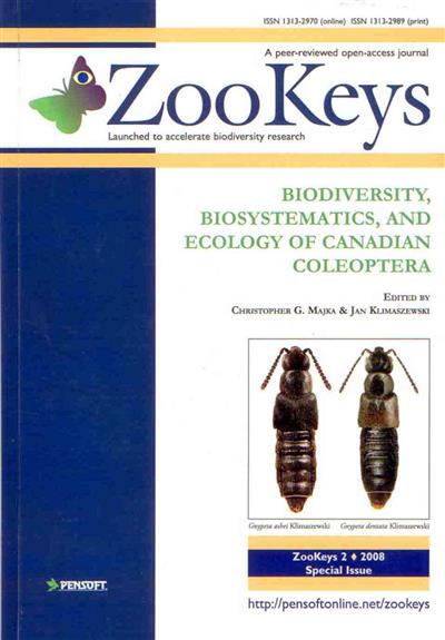 Zookeys 2 (Special Issue). Fourteen research articles on Canadian Coleoptera, mainly on the families Staphylinidae, Leiodidae, Histeridae, Nitidulidae, Cucujidae, Phalacridae, Silvanidae, Laemophloeidae, Tetratomidae, several aquatic groups, and others. The cover aspects of distribution, dispersal, zoogeographical status, phenology, and bionomics, the role of saproxylic beetles in forest ecosystems, and invasive species in native habitats
