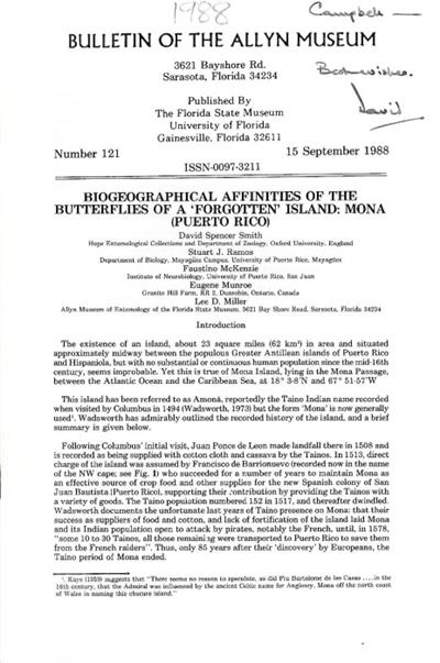 Biogeographical affinities of the butterflies of a 'forgotten' island: Mona (Puerto Rico)