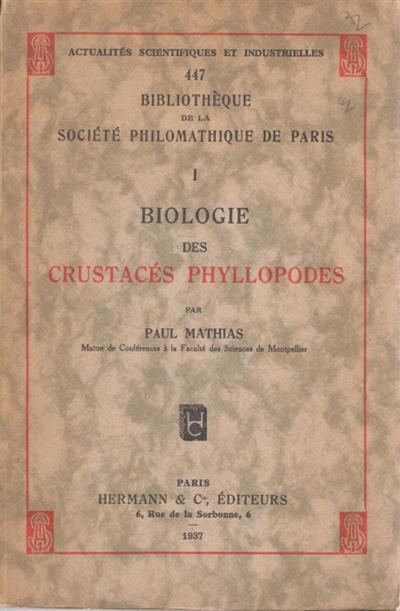 Biologie des Crustacés Phyllopodes. (Bibliothèque de la société Philomatique de Paris I)