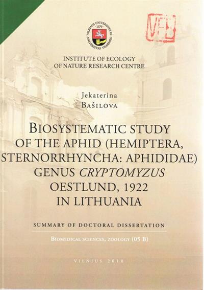 Biosystematic Study of the Aphid (Hemiptera, Sternorrhyncha: Aphididae) Genus Cryptomyzus Oestlund, 1922 in Lithuania