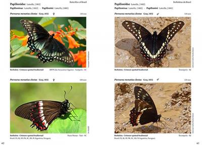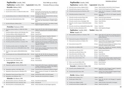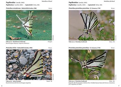 Text Portuguese and English. Butterflies of Brazil. 3-volume set. Vol. 1: Papilionidae, Pieridae, Lycaenidae, Riodinidae; Vol. 2: Nymphalidae; Vol. 3: Hesperiidae. Lists 4586 species and subspecies found in Brazil. 1727 species are illustrated.