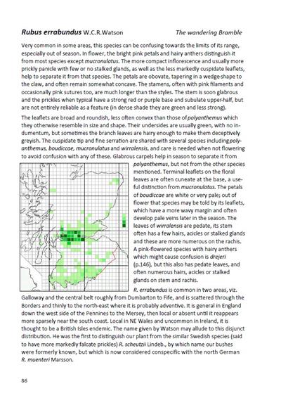 The introductory pages cover such topics as reproduction, distribution and modes of dispersal as well as the history of bramble recording in Scotland. Characters used in identification are described and illustrated in detail and two keys are given. A glossary and bibliography are provided. Notes on 30 rare or doubtful, mostly adventive species are included in an appendix.