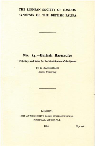 The Linnaean Society of London. Synopses of the British Fauna No. 14.