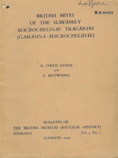 British Mites of the Subfamily Macrochelinae tragardh (Gamasina-Macrochelidae)