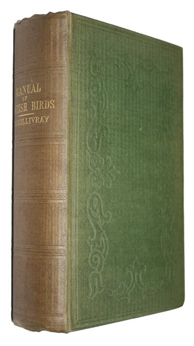 2 parts [Parts I Land Birds & Part II Water Birds]. Second edition of A Manual of British Ornithology (1840-1842), in MacGillivray's 'Manuals of Natural History' series. Tabular Index to both volumes bound at the front of Vol. I (noted as p. v/vi in the Contents) appears to be the final leaf from signature R of Vol. II (actually paginated 271-272). The half-title and title to Vol. II are omitted, and an 'Appendix of Recently Observed Species' follows the main text to Vol. II (with a disconinuity in pagination).