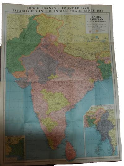 Includes a large folded map of India and Pakistan. Brocklebanks - Founded 1770, Established in the India Trade since 1813, accompanied by a brief history of the famous shipping company, Brocklebanks, and an Index to the map.