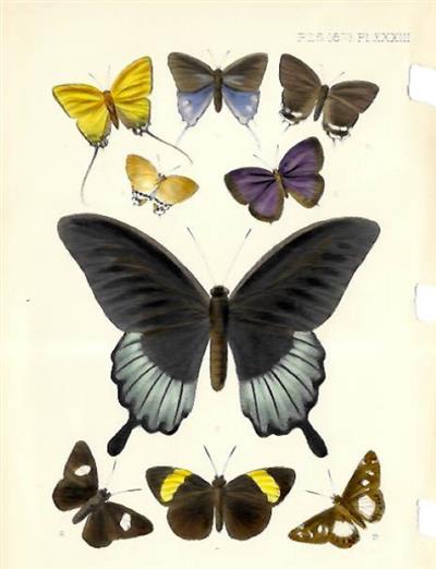 Two attractive hand coloured lithographic plates by the artist Edward William Cooke (1811-1880) from, 'A list of the Collections of Diurnal Lepidoptera made by Mr. Lowe in Borneo' by H. Druce, Proceedings of the Zoological Society of London, 1873.