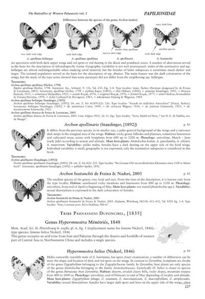 The first of a 2-volume set which will cover butterflies of the West Palaearctic region from the Azores and Canary Islands through Europe, North Africa, the Middle East, Iraq, Iran, and the Caucasus to the eastern slopes of the Ural Mountains, western Kazakhstan and Uzbekistan, and the eastern border of Turkmenistan. Includes 922 species (432 in the first volume and 490 in the second), with over 20,000 unique illustrations: colour photographs of over 12,000 set specimens, including males, females, upper- and undersides of wings, type specimens, many rare species and subspecies; approximately 12,000 colour photographs of butterflies in nature and their habitats, including historical photographs of biotopes that have been destroyed in recent years. About 900 colour distribution maps.