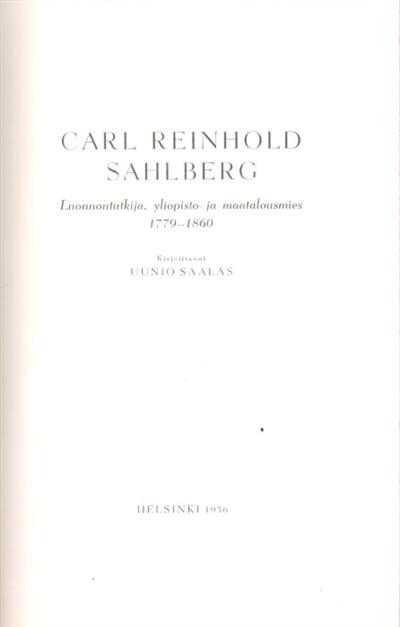 Carl Reinhold Sahlberg, Luonnontutkija, Yliopisto- Ja Maatalousmies 1779-1860
