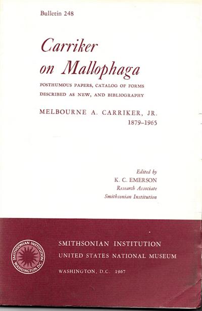 Carriker on Mallophaga: Posthumous Papers, Catalog of forms described as new and bibliography Melbourne A. Carriker, 1879-1965