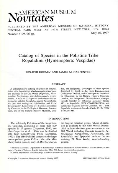 Catalog of Species in the Polistine Tribe Ropalidiini (Hymenoptera: Vespidae)