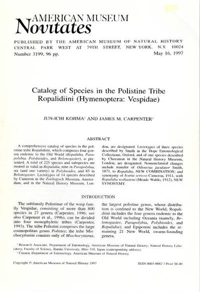 Catalog of Species in the Polistine Tribe Ropalidiini (Hymenoptera: Vespidae)