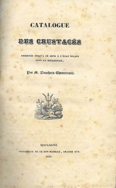 Catalogue des Crustacés observés jusqu'a ce jour a l'état vivant dans le Boulonnais