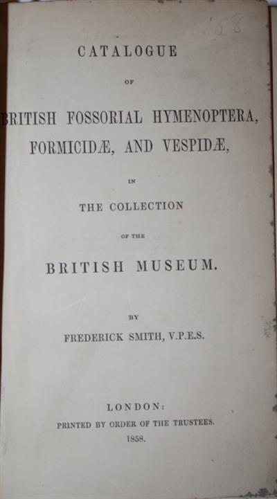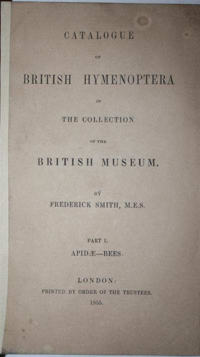 Catalogue of British Fossorial Hymenoptera, Formicidae, and Vespidae in the Collection of the British Museum [and] Catalogue of British Hymenoptera in the Collection of the British Museum. Part I: Apidae-Bees