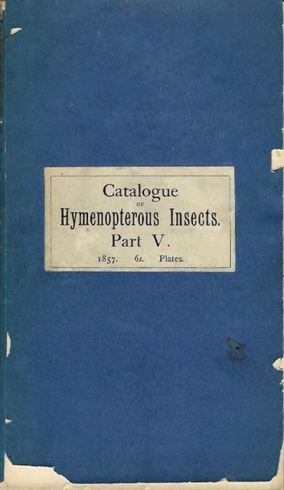 First edition. 'The object of the present Catalogue is to give a complete list of all the genera and species of the Solitary and Social Wasps (Vespidae) which have been described in works, and a description of those in the British Museum which appear to be hitherto undescribed.' - Preface.