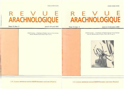 Five parts in 2 vols (Parts I & II; Parts III, IV and V). Indexes all specific or sub-specific taxa indicated from west-palearctic area noted in bibliographic catalogues as well as in the lists of species in regional or national catalogues. Revue Arachnologique Tom 15, fasc. 3+4.