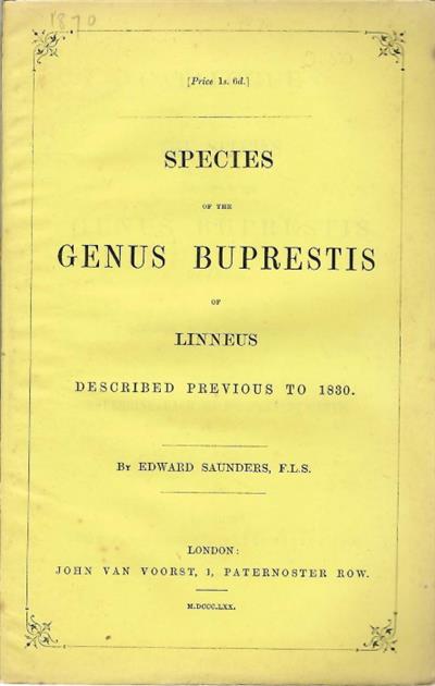 Catalogue of the Species contained in the Genus Buprestis of Linneus, previous to its subdivision by Eschscholtz in 1829, referring each to its present Genus