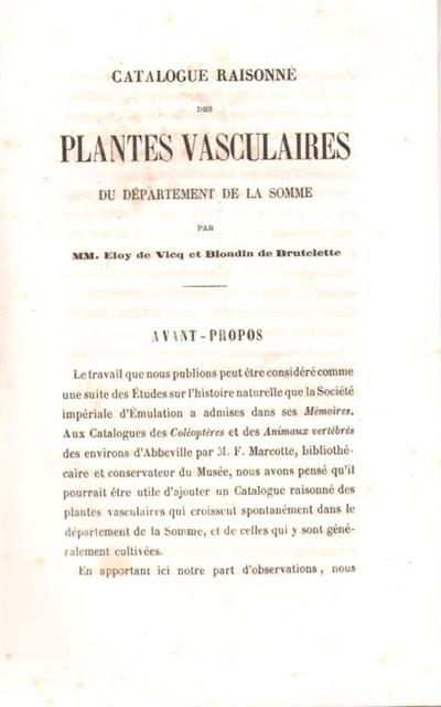 Catalogue raisonné de plantes vasculaires du departement de la Somme