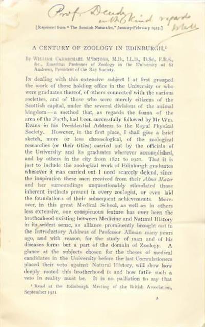 Century of Zoology in Edinburgh [together with] The Riches of St Andrews Bay