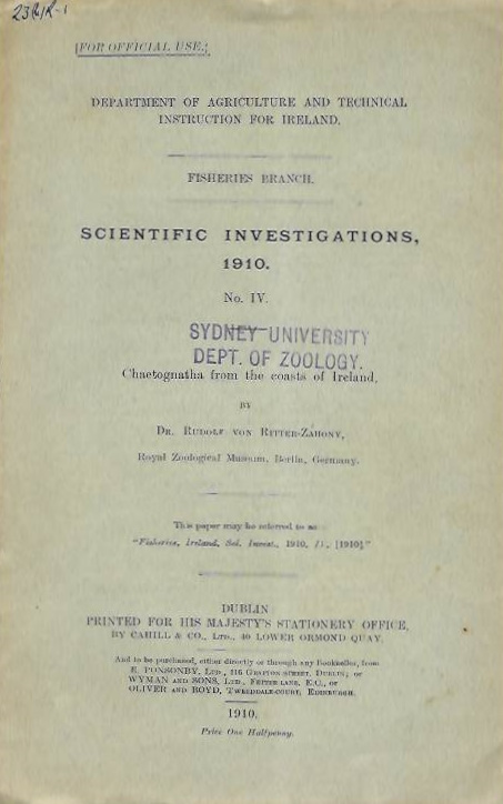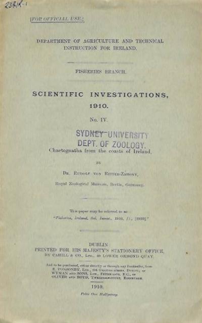 From Department of Agricultutre and Technical instruction for Ireland, Fisheries Branch, Scientific Investigations, 1910 No. IV.
