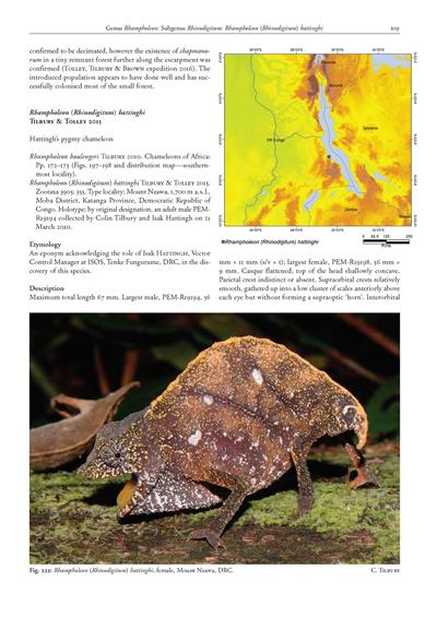 2nd revised edition. A lot has happened in chameleon biology and taxonomy in the eight years between this revision and its original. The author has summarised and integrated all of this into the species accounts, many of which have been rewritten. Over 20 new taxa have been added since 2010. The book combines a stunning array of beautiful images with its up-to-date science.