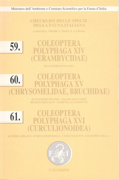 Checklist delle Specie della Fauna Italiana: 59. Coleoptera Polyphaga XIV (Cerambycidae); 60. Coleoptera Phytophaga XV (Chrysomelidae, Bruchidae); 61. Coleoptera Phytophaga XVI (Curculionoidea)
