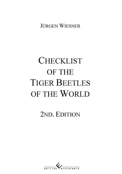 2nd edition. A Systematic List of all Tiger Beetle species; Bibliography; Index.
