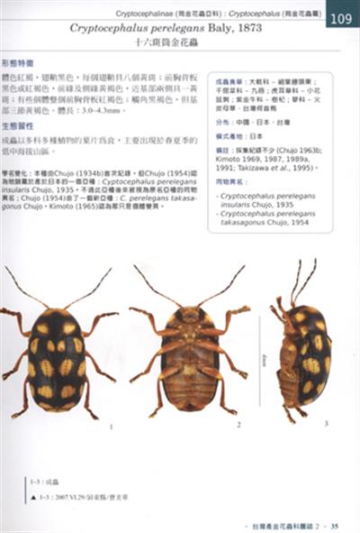Text Chinese. Identification, morphology and biology of the Chrysomelidae of Taiwan. Taiwan has over 700 species of Chrysomelidae. Each volume includes 100 species and over 500 colour photos.