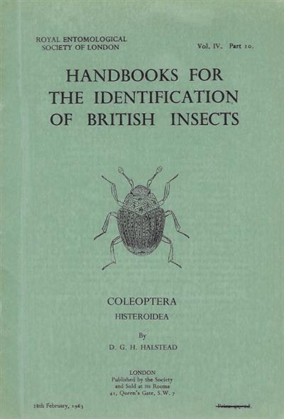 Coleoptera Histeroidea. Sphaeritidae and Histeridae (Handbooks for Identification of British Insects 4/10)