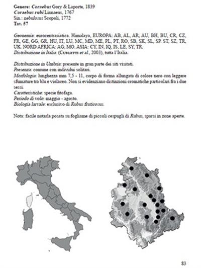 Text Italian. Through years of study and meticulous field research, the author has provided us with a rich body of work on this splendid family of beetles. Excellent colour macrophotographs depict the 104 species found in Umbria, 43 of which are new to the region. For each species, the geographic range, Italian and regional distribution, larval biology, and flight season are reported.