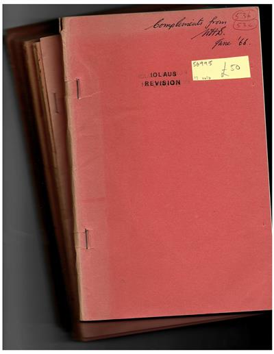 Text French. Offprints from Bulletin de l'I.F.A.N. Includes 'Révision des genres appartenant au groupe de Iolaus', Stempffer & Bennet, 1958-1959 & 'Complement a la revision des genres du groupe des Iolaus', 1961; 'Révision du genre Pentila, 1961; 'Contribution a l'étude des Lépidoptères Lycaenidae d'Afrique tropicale et équatoriale', 1962 & 1964, and 7 others.