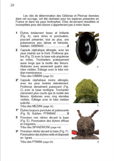 Text French/English. (Arvernsis - hors série no. 2) A synthsis of knowledge on the 53 species of Gibbinae and Ptininae which occur in France. Illustrated identification keys. Habitus and aedeagus photographs for each species. Distribution maps for France.