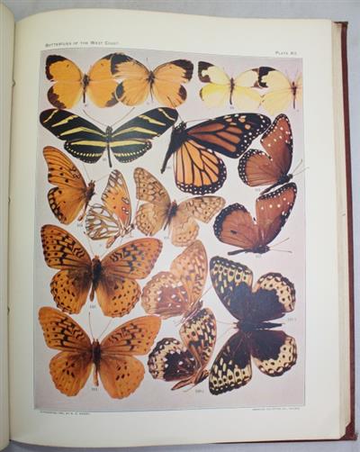 The advertisement (following the title page) for this book states "These colored plates...are sample copies of the plates which form the illustrations of "The Buterflies of the West Coast"...and these plates in sets are now offered as an abridgement of that book, as an advertisement of it, as the best possible substitute for the more costly book..."