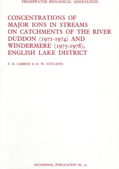 Concentrations of major ions in streams on catchments of the river Duddon (1971-1974) and Windermere (1975-1978), English Lake District